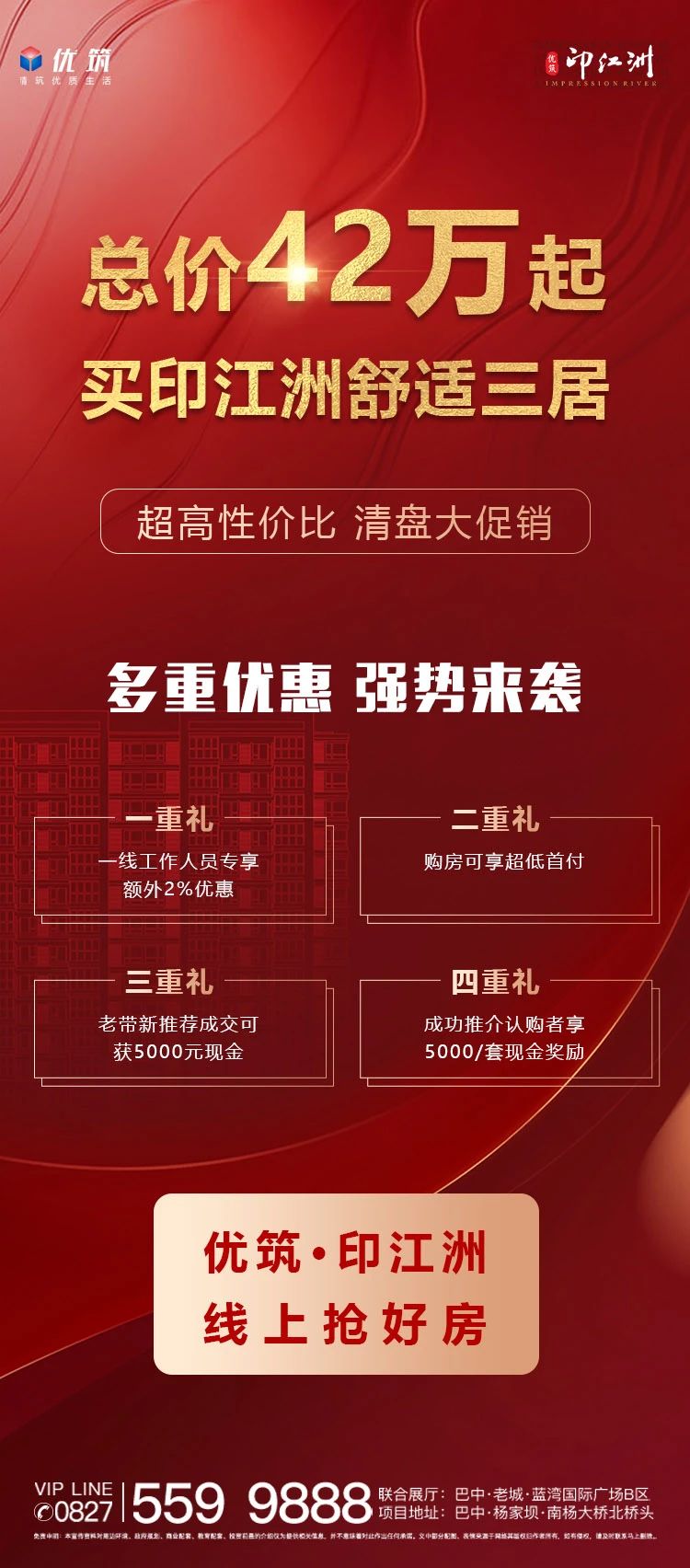 优筑·印江洲清盘大促销 总价42万起抢好房 舒适三居 四重好礼更多优惠~!