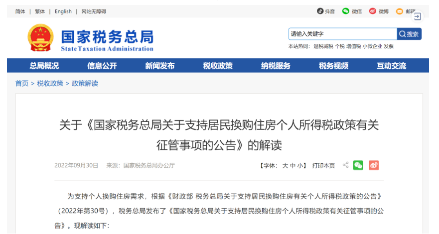 财政部、税务总局发布关于支持居民换购住房有关个人所得税政策的公告